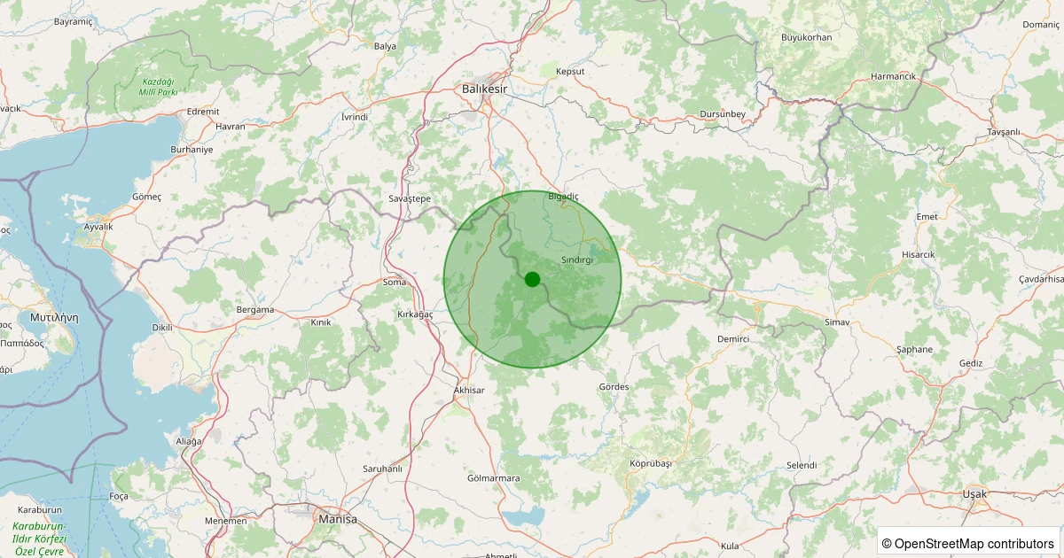 Son 7 gün içinde Sındırgı noktasından 100 km yarıçap içerisinde meydana gelen diğer depremler:
