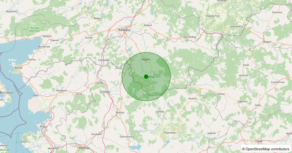 Son 7 gün içinde Sındırgı - İbiller noktasından 100 km yarıçap içerisinde meydana gelen diğer depremler: