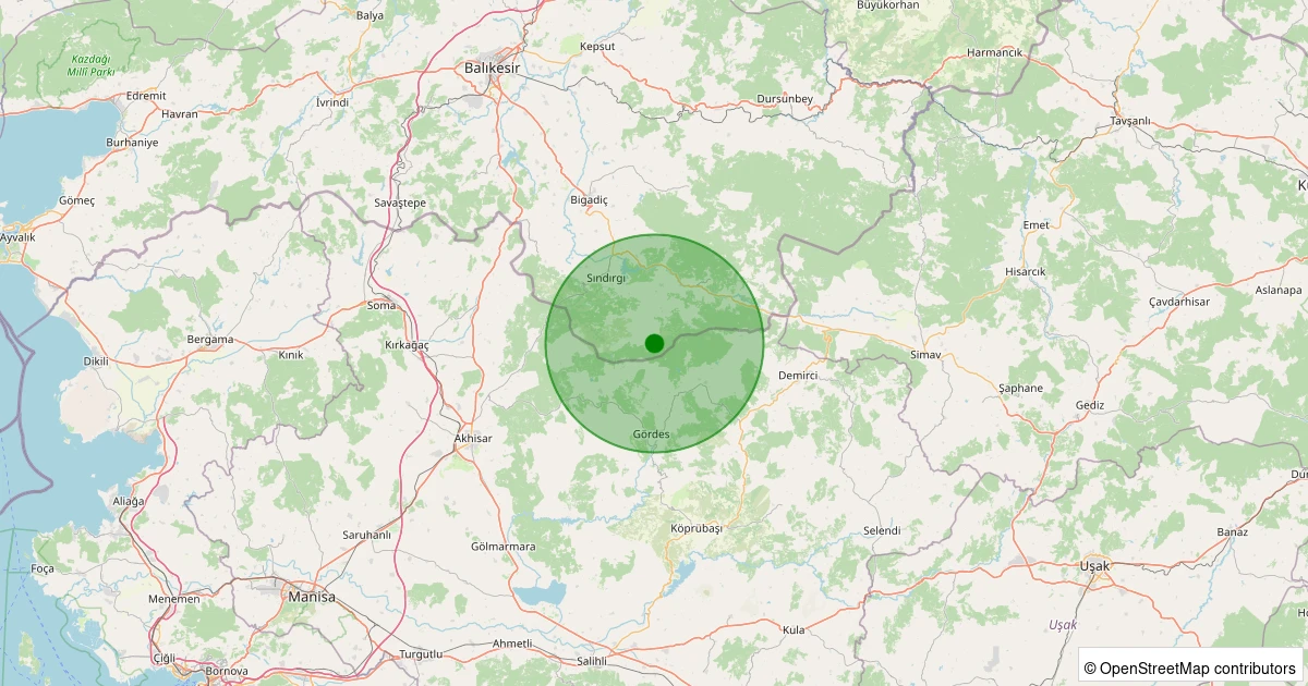 Son 7 gün içinde Sındırgı - Yüreğil/Merkez noktasından 100 km yarıçap içerisinde meydana gelen diğer depremler: