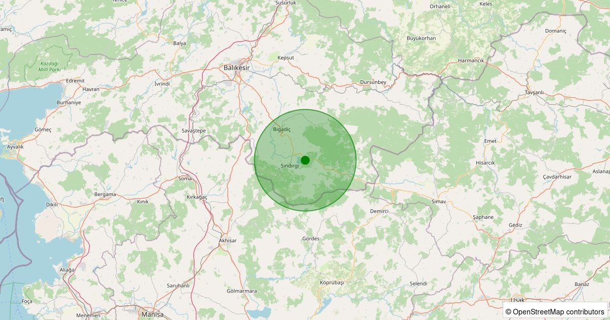 Son 7 gün içinde Sındırgı - Yolcupınar noktasından 100 km yarıçap içerisinde meydana gelen diğer depremler: