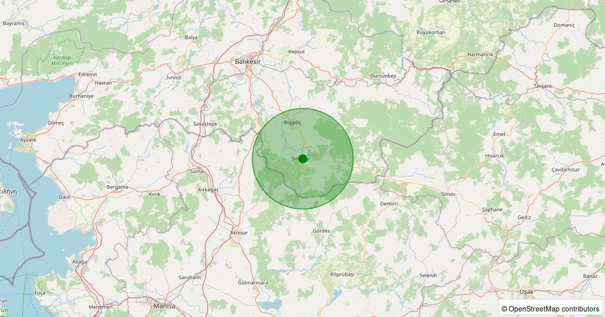 Son 7 gün içinde Sındırgı - Çavdaroğlu noktasından 100 km yarıçap içerisinde meydana gelen diğer depremler:
