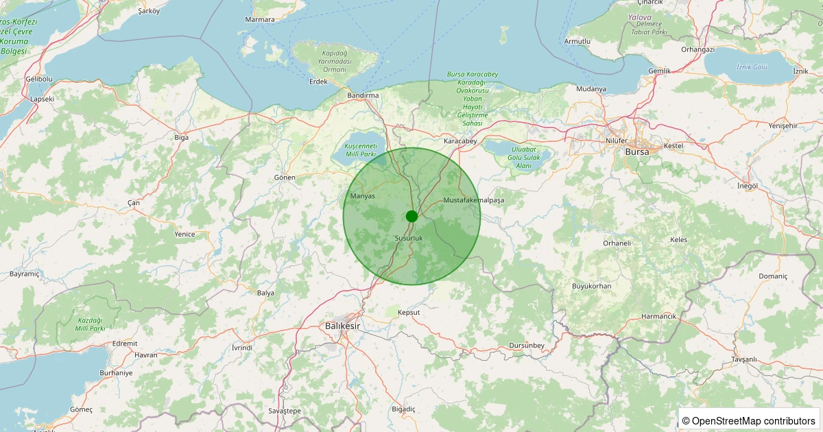Son 7 gün içinde Susurluk - Yahyaköy noktasından 100 km yarıçap içerisinde meydana gelen diğer depremler: