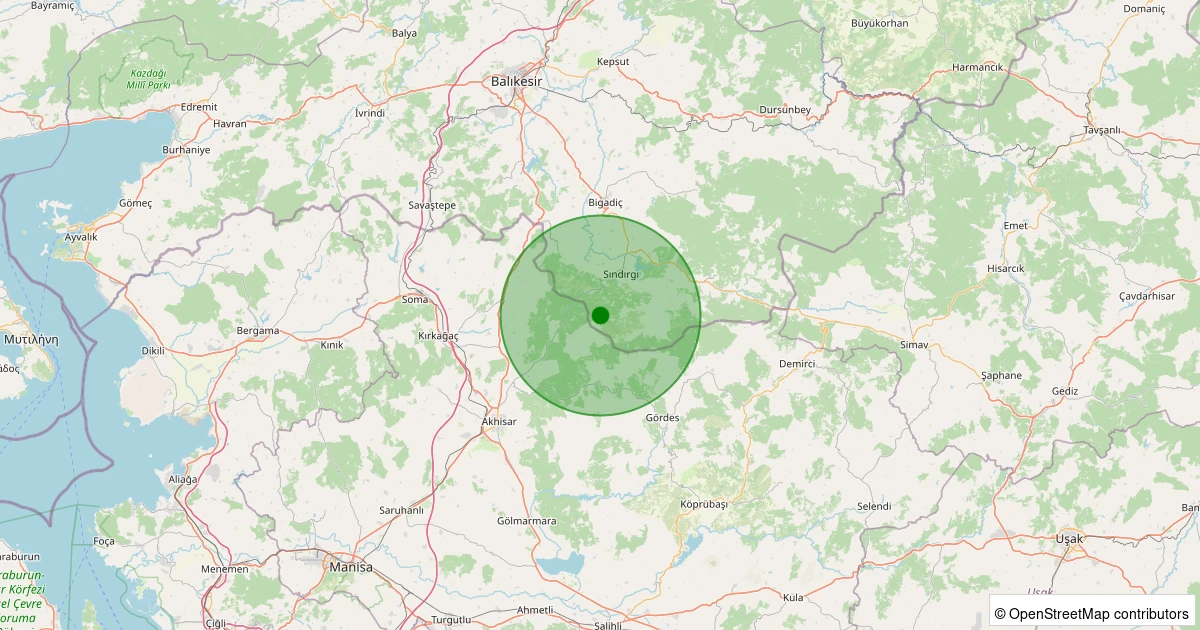 Son 7 gün içinde Sındırgı - Sinandede noktasından 100 km yarıçap içerisinde meydana gelen diğer depremler: