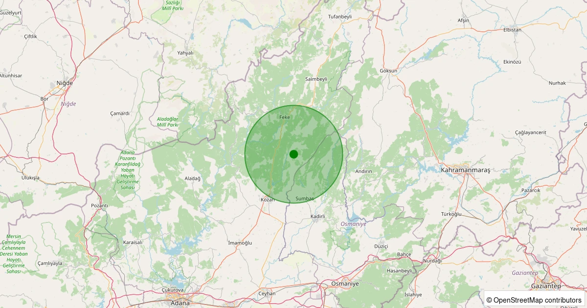 Son 7 gün içinde Kozan - Kuyubeli noktasından 100 km yarıçap içerisinde meydana gelen diğer depremler: