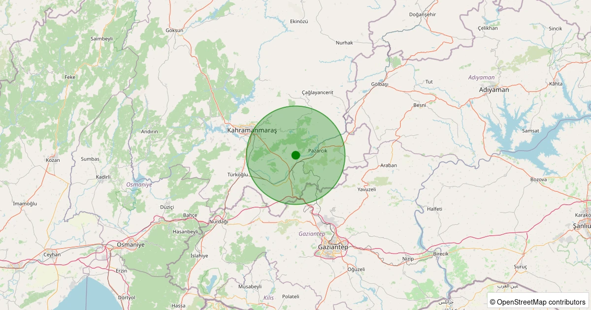Son 7 gün içinde Dulkadiroğlu noktasından 100 km yarıçap içerisinde meydana gelen diğer depremler: