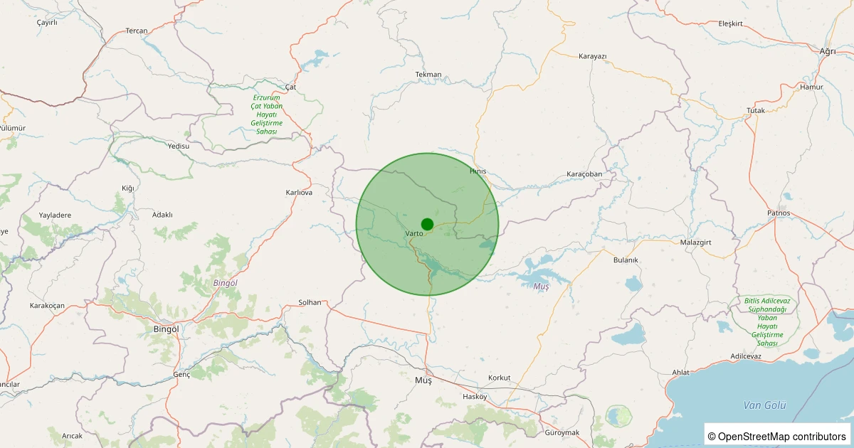Son 7 gün içinde Varto - Hürriyet (Taşlıyaka) noktasından 100 km yarıçap içerisinde meydana gelen diğer depremler: