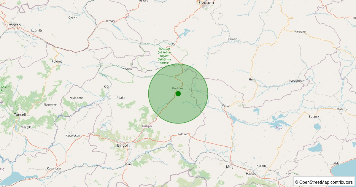 Son 7 gün içinde Karlıova - Toklular Köyü noktasından 100 km yarıçap içerisinde meydana gelen diğer depremler: