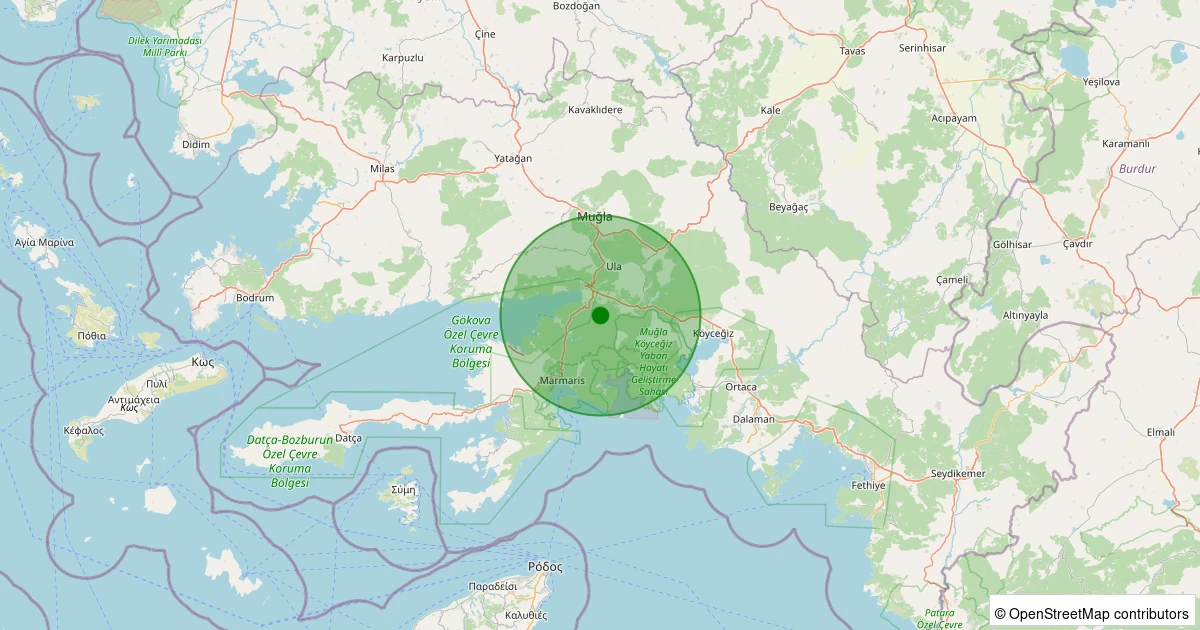 Son 7 gün içinde Ula - Gökçe noktasından 100 km yarıçap içerisinde meydana gelen diğer depremler:
