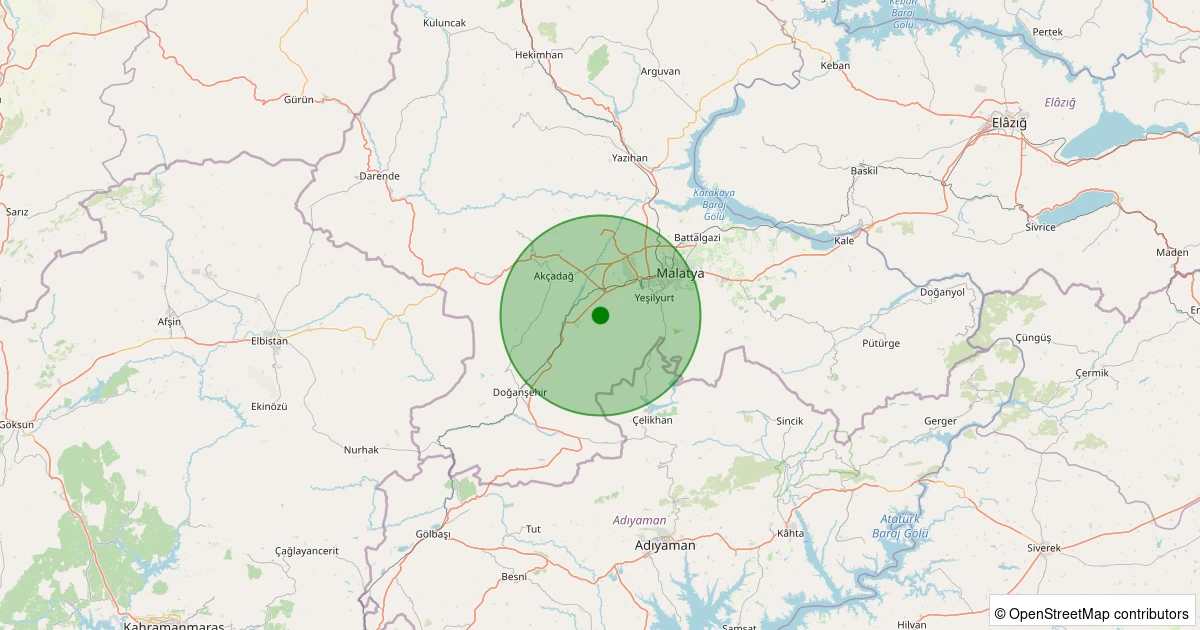 Son 7 gün içinde Yeşilyurt - Cafana noktasından 100 km yarıçap içerisinde meydana gelen diğer depremler: