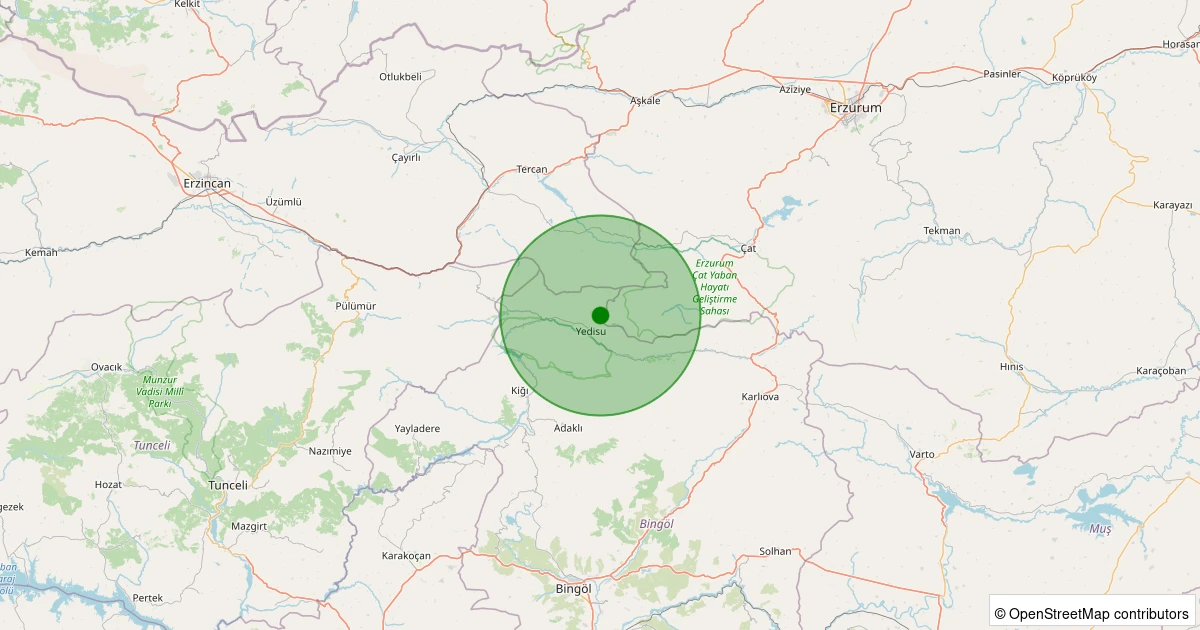 Son 7 gün içinde Yedisu - Kaşıklı Köyü noktasından 100 km yarıçap içerisinde meydana gelen diğer depremler: