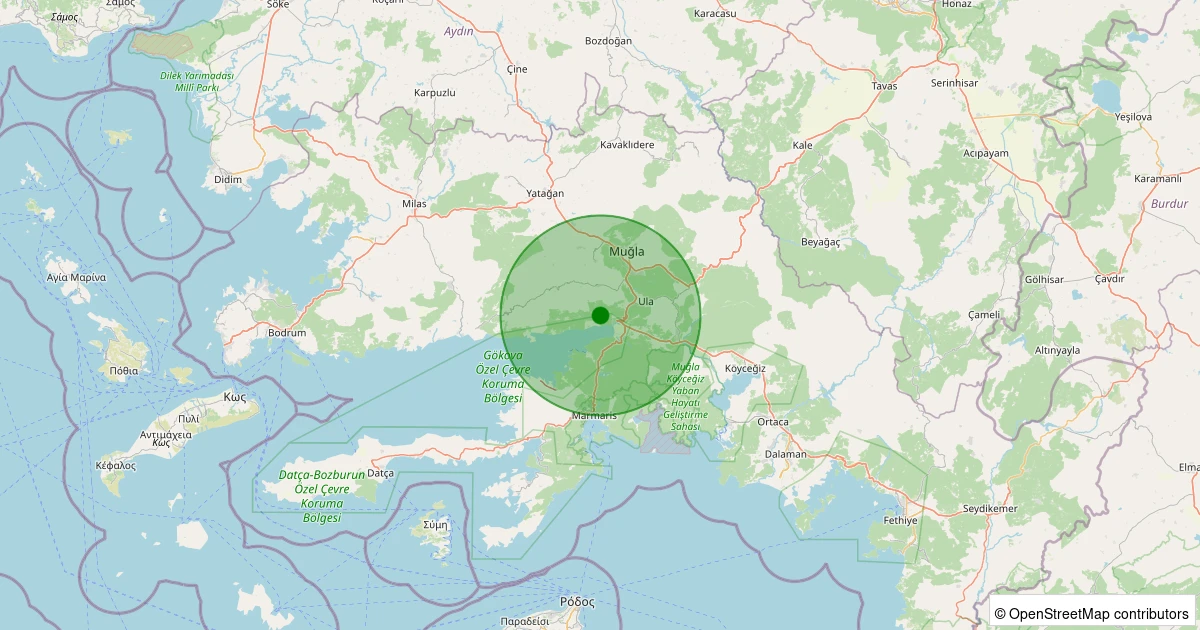 Son 7 gün içinde Menteşe - Kuyucak noktasından 100 km yarıçap içerisinde meydana gelen diğer depremler: