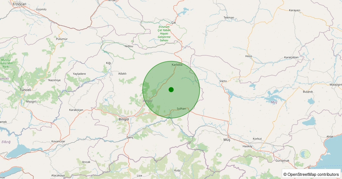 Son 7 gün içinde Karlıova noktasından 100 km yarıçap içerisinde meydana gelen diğer depremler: