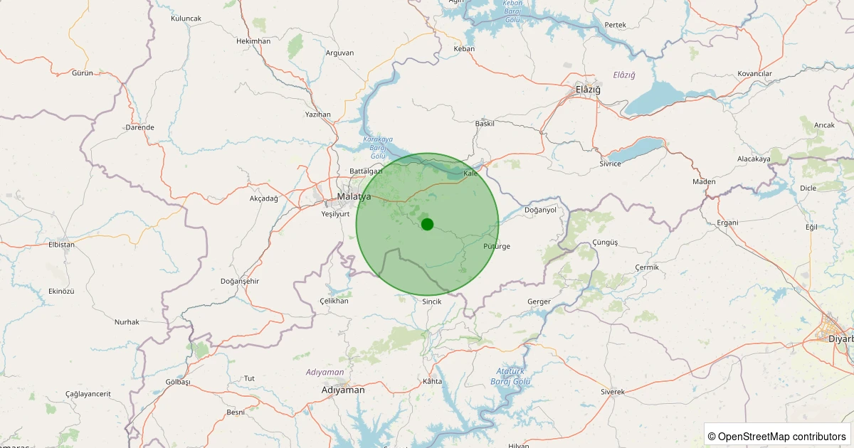 Son 7 gün içinde Pütürge - Kökpınar Köyü noktasından 100 km yarıçap içerisinde meydana gelen diğer depremler: