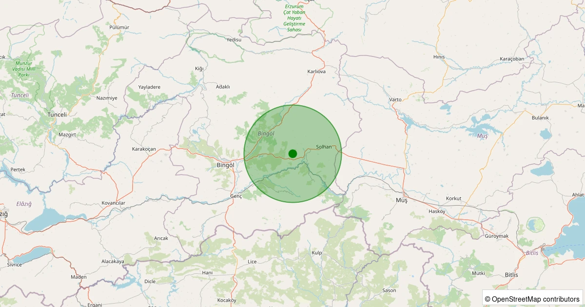 Son 7 gün içinde Solhan - Yenidal Köyü noktasından 100 km yarıçap içerisinde meydana gelen diğer depremler: