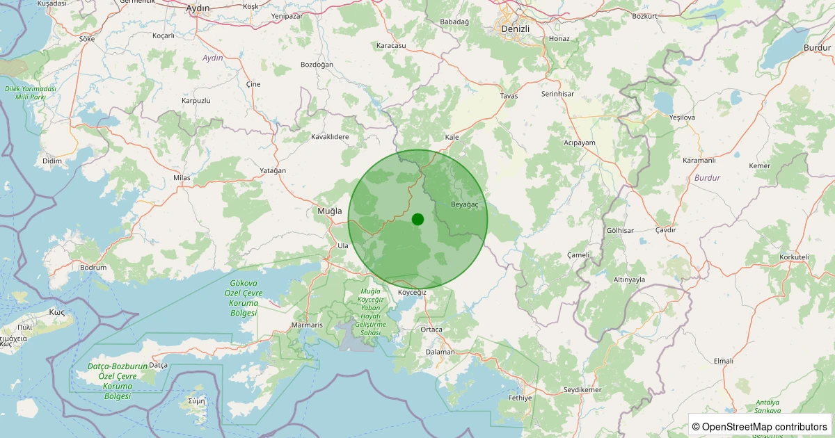 Son 7 gün içinde Menteşe noktasından 100 km yarıçap içerisinde meydana gelen diğer depremler: