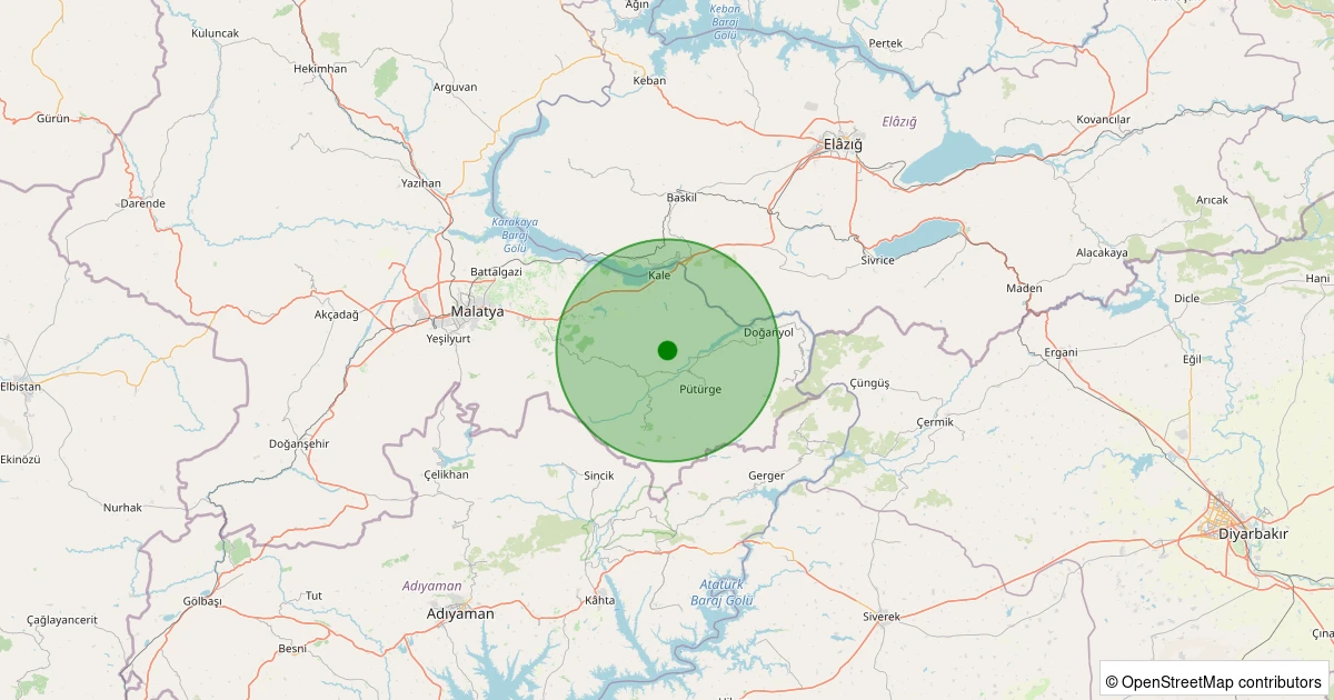 Son 7 gün içinde Pütürge - Pazarcık Köyü noktasından 100 km yarıçap içerisinde meydana gelen diğer depremler: