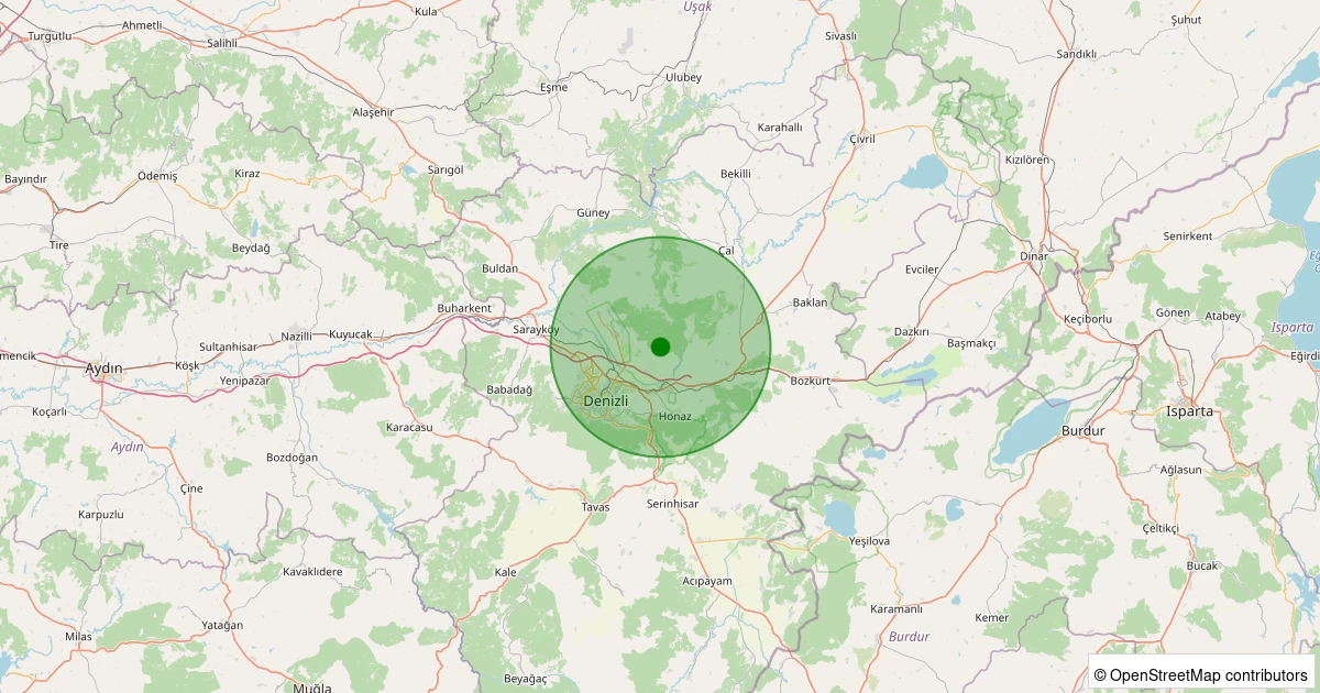 Son 7 gün içinde Pamukkale - Güzelpınar Köyü noktasından 100 km yarıçap içerisinde meydana gelen diğer depremler: