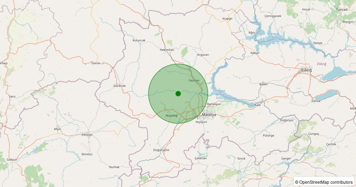 Son 7 gün içinde Akçadağ - Keklikpınar noktasından 100 km yarıçap içerisinde meydana gelen diğer depremler: