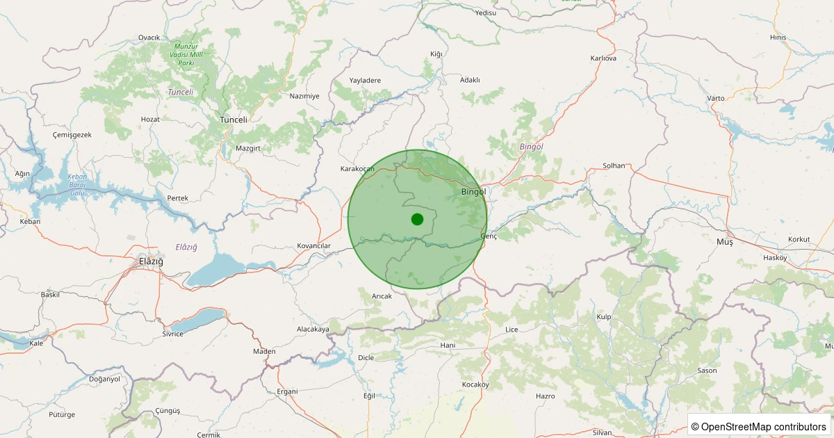 Son 7 gün içinde Palu - Büyükçaltı Köyü noktasından 100 km yarıçap içerisinde meydana gelen diğer depremler: