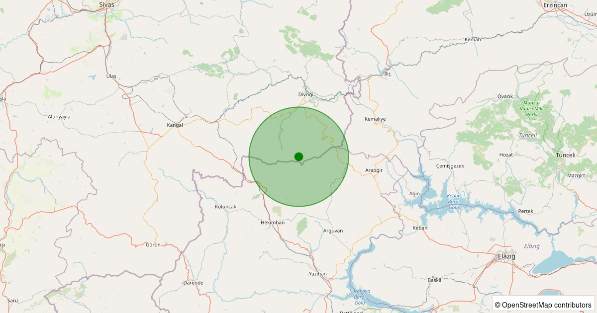Son 7 gün içinde Divriği - Çakmakdüzü Köyü noktasından 100 km yarıçap içerisinde meydana gelen diğer depremler: