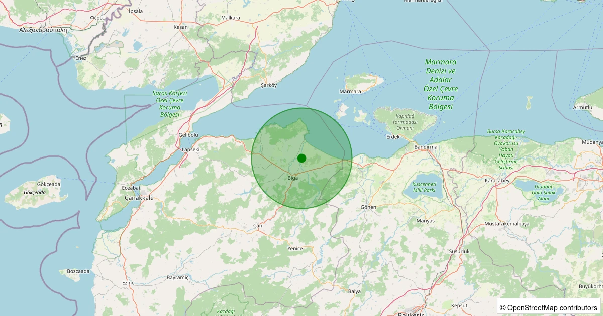 Son 7 gün içinde Biga - Gümüşçay Köyü noktasından 100 km yarıçap içerisinde meydana gelen diğer depremler: