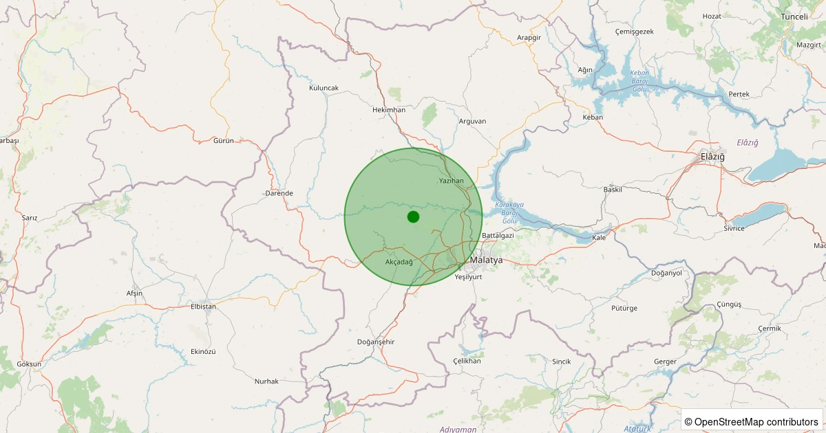 Son 7 gün içinde Akçadağ - Keklikpınar noktasından 100 km yarıçap içerisinde meydana gelen diğer depremler: