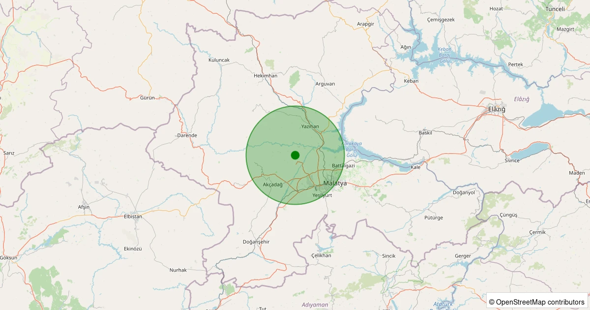 Son 7 gün içinde Akçadağ - Ilıcak noktasından 100 km yarıçap içerisinde meydana gelen diğer depremler: