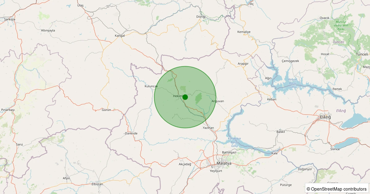 Son 7 gün içinde Hekimhan - Dumlu Köyü noktasından 100 km yarıçap içerisinde meydana gelen diğer depremler: