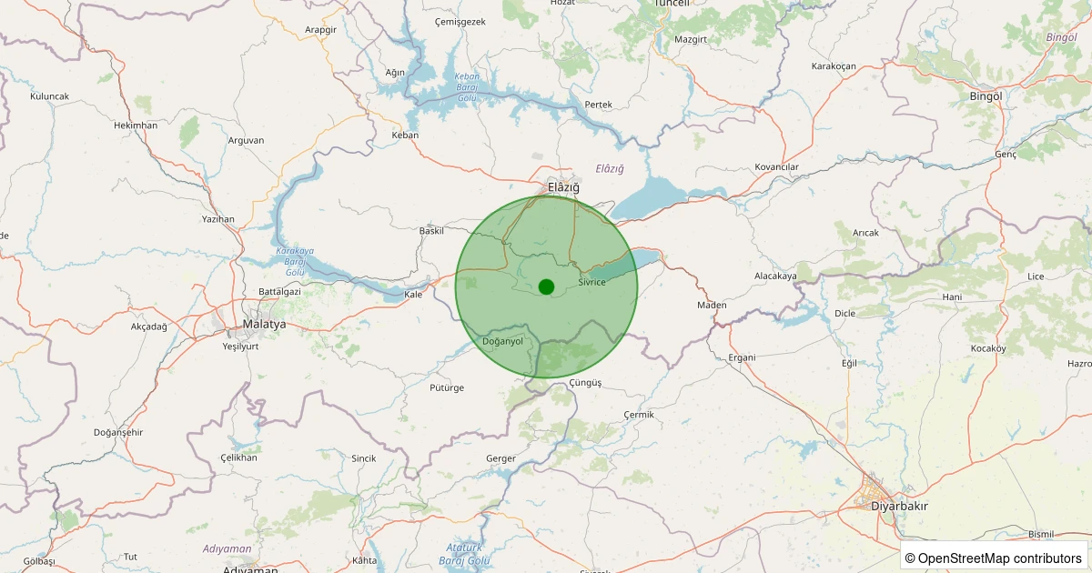 Son 7 gün içinde Sivrice - Kavak Köyü noktasından 100 km yarıçap içerisinde meydana gelen diğer depremler: