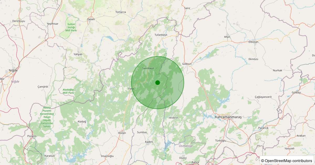 Son 7 gün içinde Saimbeyli - Karakuyu noktasından 100 km yarıçap içerisinde meydana gelen diğer depremler: