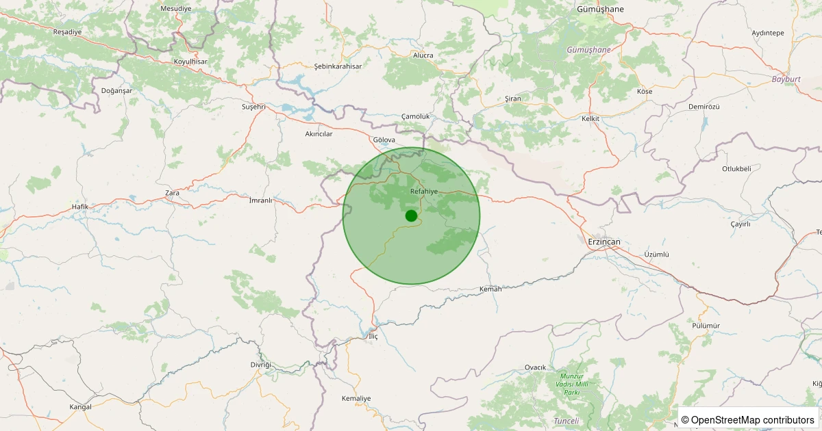 Son 7 gün içinde Refahiye - Arpayazı Köyü noktasından 100 km yarıçap içerisinde meydana gelen diğer depremler:
