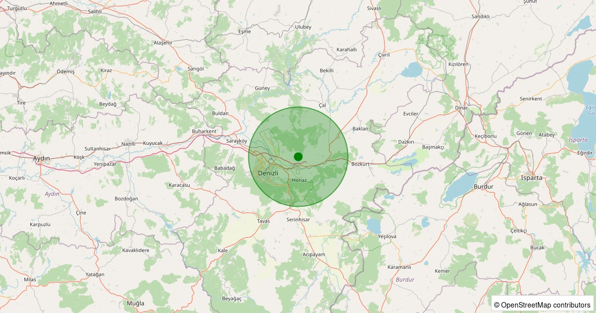 Son 7 gün içinde Pamukkale - Kocadere Köyü noktasından 100 km yarıçap içerisinde meydana gelen diğer depremler: