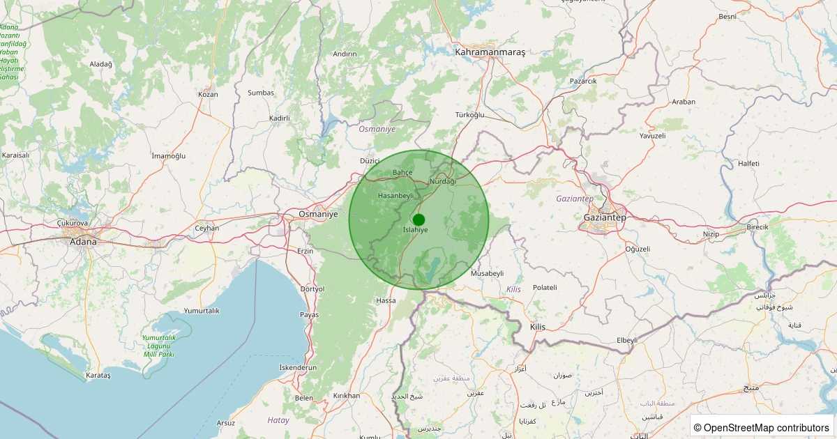 Son 7 gün içinde İslahiye - Hürriyet noktasından 100 km yarıçap içerisinde meydana gelen diğer depremler: