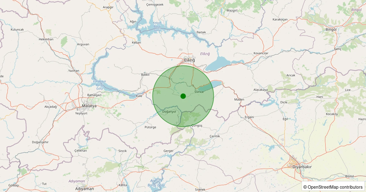 Son 7 gün içinde Sivrice - Kavak Köyü noktasından 100 km yarıçap içerisinde meydana gelen diğer depremler: