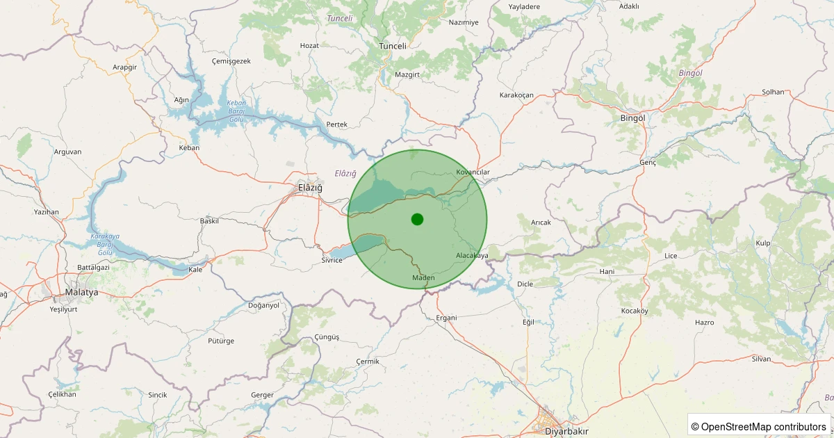 Son 7 gün içinde Maden - Kumyazı Köyü noktasından 100 km yarıçap içerisinde meydana gelen diğer depremler: