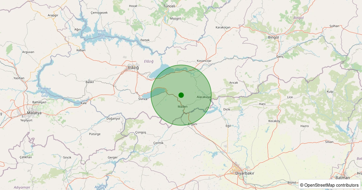 Son 7 gün içinde Maden - Kayalar Köyü noktasından 100 km yarıçap içerisinde meydana gelen diğer depremler: