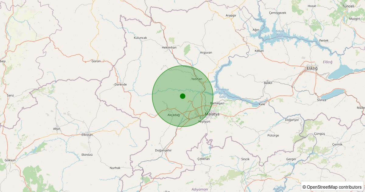 Son 7 gün içinde Akçadağ - Ilıcak noktasından 100 km yarıçap içerisinde meydana gelen diğer depremler: