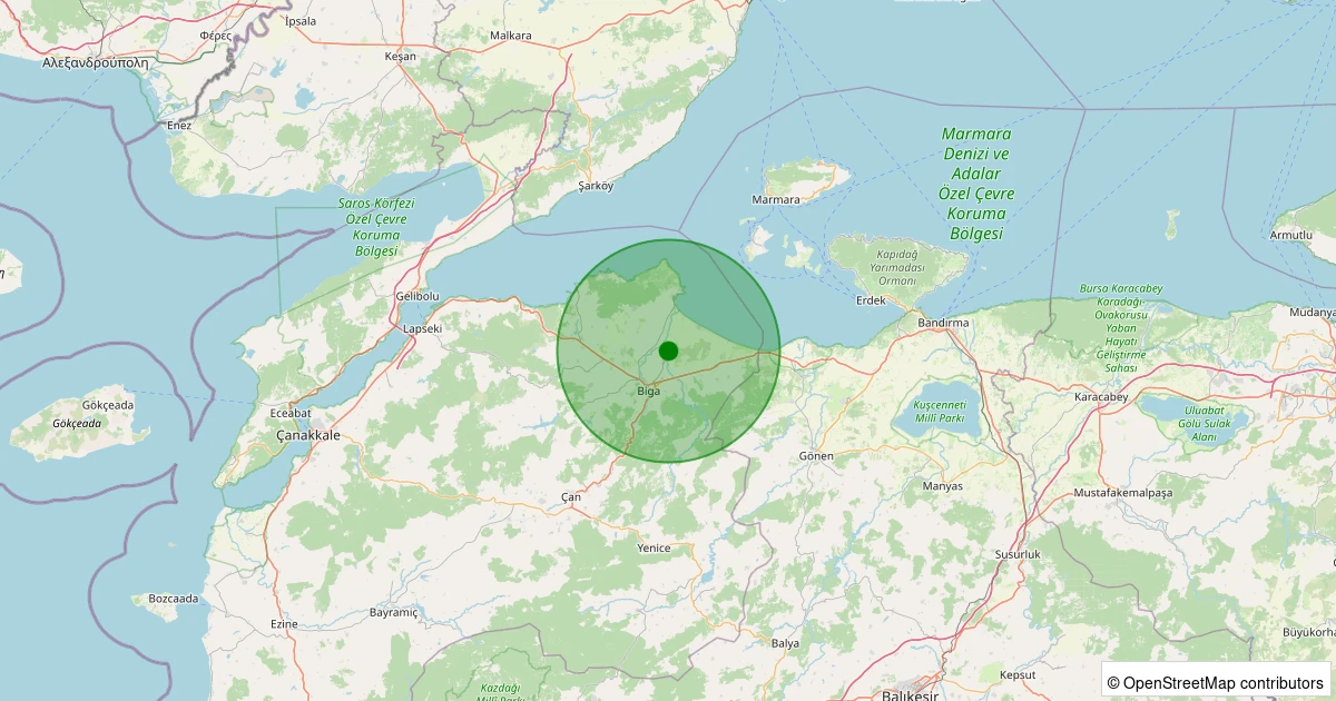 Son 7 gün içinde Biga - Gümüşçay Köyü noktasından 100 km yarıçap içerisinde meydana gelen diğer depremler: