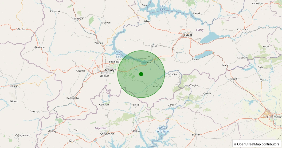 Son 7 gün içinde Battalgazi - Kamıştaş Köyü noktasından 100 km yarıçap içerisinde meydana gelen diğer depremler: