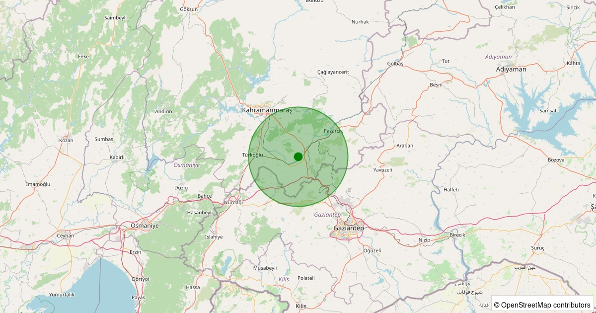 Son 7 gün içinde Dulkadiroğlu - Narlı Çerkezler noktasından 100 km yarıçap içerisinde meydana gelen diğer depremler: