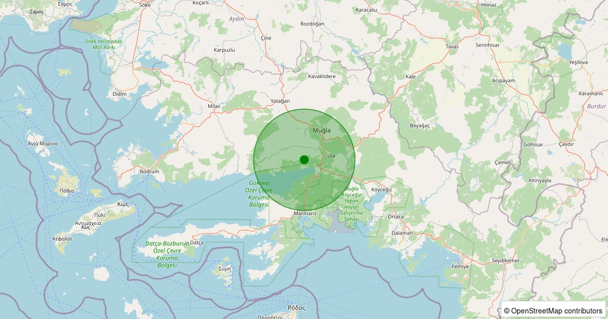 Son 7 gün içinde Menteşe - Kuyucak noktasından 100 km yarıçap içerisinde meydana gelen diğer depremler: