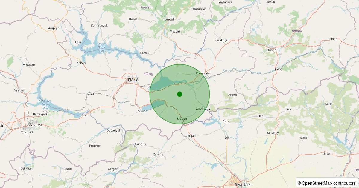 Son 7 gün içinde Maden - Kumyazı Köyü noktasından 100 km yarıçap içerisinde meydana gelen diğer depremler: