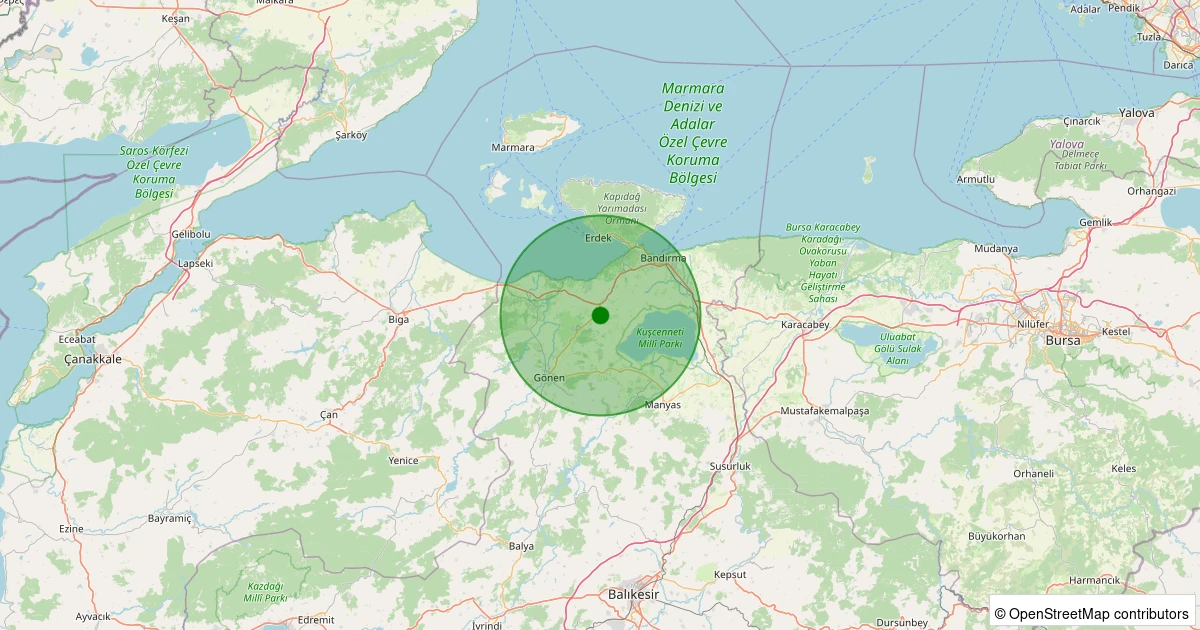 Son 7 gün içinde Bandırma - Beyköy noktasından 100 km yarıçap içerisinde meydana gelen diğer depremler: