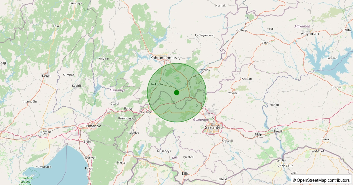Son 7 gün içinde Kahramanmaraş noktasından 100 km yarıçap içerisinde meydana gelen diğer depremler: