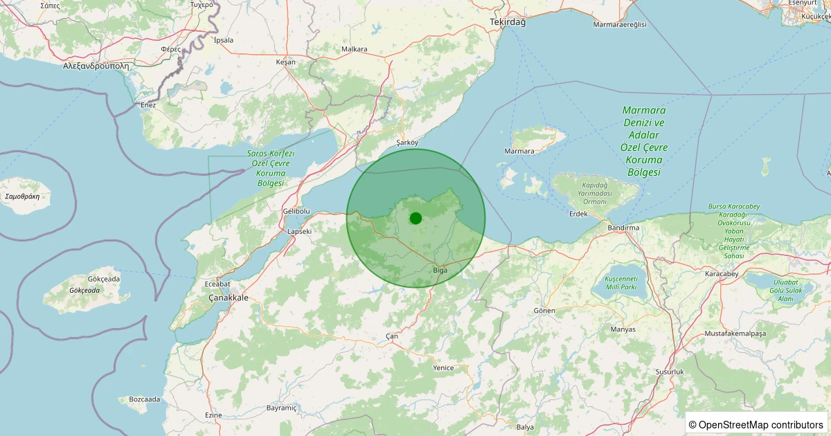 Son 7 gün içinde Biga - Bekirli Köyü noktasından 100 km yarıçap içerisinde meydana gelen diğer depremler: