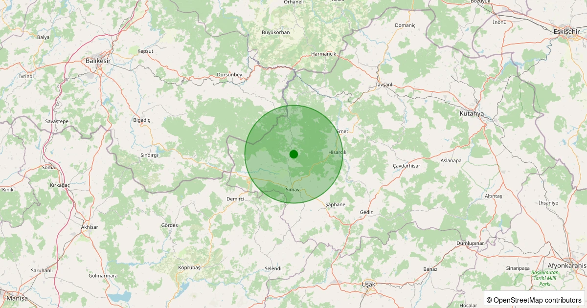 Son 7 gün içinde Simav - Yemişli Köyü noktasından 100 km yarıçap içerisinde meydana gelen diğer depremler: