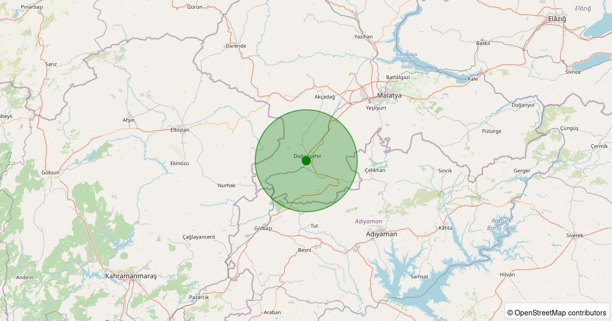 Son 7 gün içinde Doğanşehir - Yeni noktasından 100 km yarıçap içerisinde meydana gelen diğer depremler: