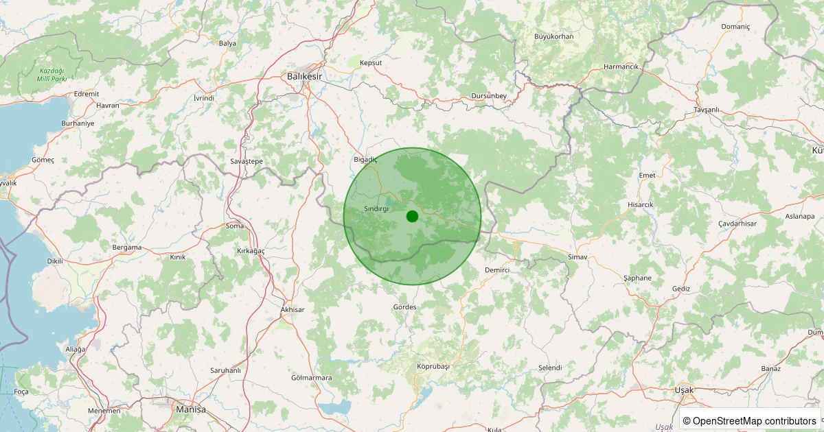 Son 7 gün içinde Sındırgı - Osmanlar noktasından 100 km yarıçap içerisinde meydana gelen diğer depremler: