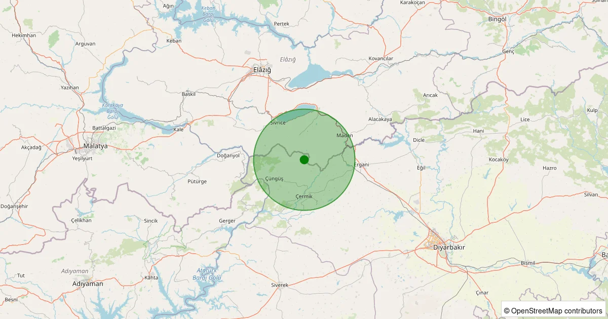 Son 7 gün içinde Çüngüş - Çaybaşı Köyü noktasından 100 km yarıçap içerisinde meydana gelen diğer depremler:
