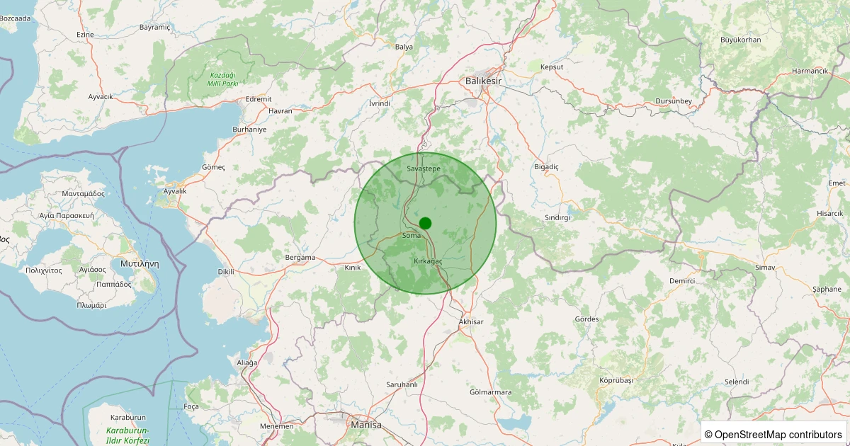 Son 7 gün içinde Soma - Evciler noktasından 100 km yarıçap içerisinde meydana gelen diğer depremler: